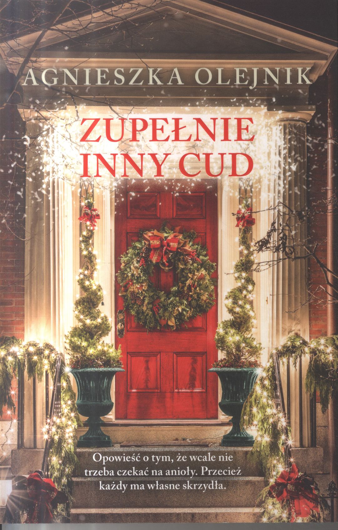 Opowieść o tym, że wcale nie trzeba czekać na anioły. Przecież każdy ma własne skrzydła. Otoczony pięknym parkiem pałacyk w Leszczynach jest już gotowy na przyjęcie gości. Jego właściciel, milioner Norbert Hall, spodziewa się, że będą to niezwykłe święta. Niestety, kiedy wszyscy zasiądą do Wigilii, okaże się, że nic nie jest takie, na jakie wygląda. Pod uśmiechami kryją się ludzkie dramaty. Ula pragnie dziecka, Matylda leczy złamane serce, Kostek nie radzi sobie w związkach, Sonia pragnie zostać świętą, zaś babcia Rozalia nie lubi samej siebie. Czy tej rodzinie można jeszcze pomóc? I jaką rolę do odegrania mają bezdomny w damskim skafandrze, kot dachowiec oraz piesek z jednym okiem?