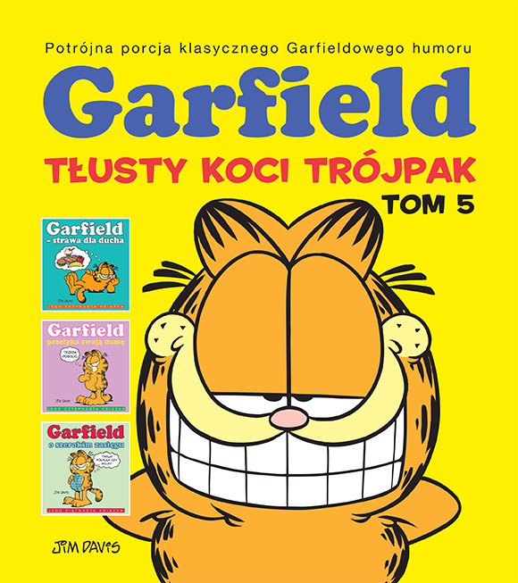 Garfield : tłusty koci trójpak T.5 / scenariusz i rysunki Jim Davis ; tłumaczenie Piotr W. Cholewa. - Warszawa : Egmont Polska, copyright 2019. - 286, [2] strony : ilustracje kolorowe ; 23 cm.